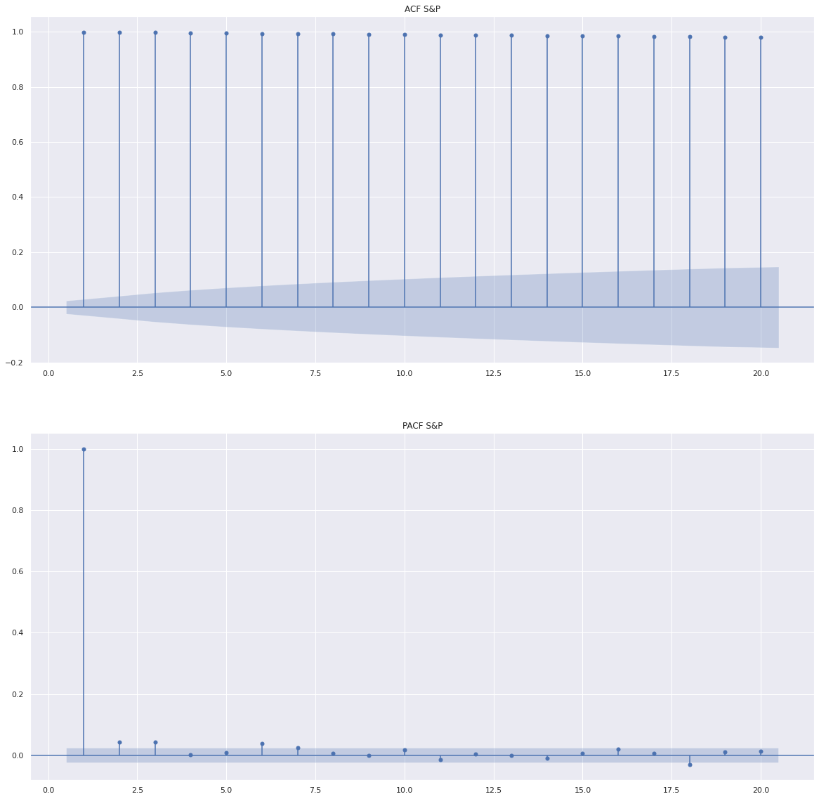 sgt.plot_pacf(df['Close'], lags = 20, zero = False, method = ('ols'), ax=ax2)