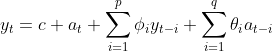 ARMA모형은 AR모형과 MA모형을 섞어서 일반적으로 아래와 같이 표현됩니다.